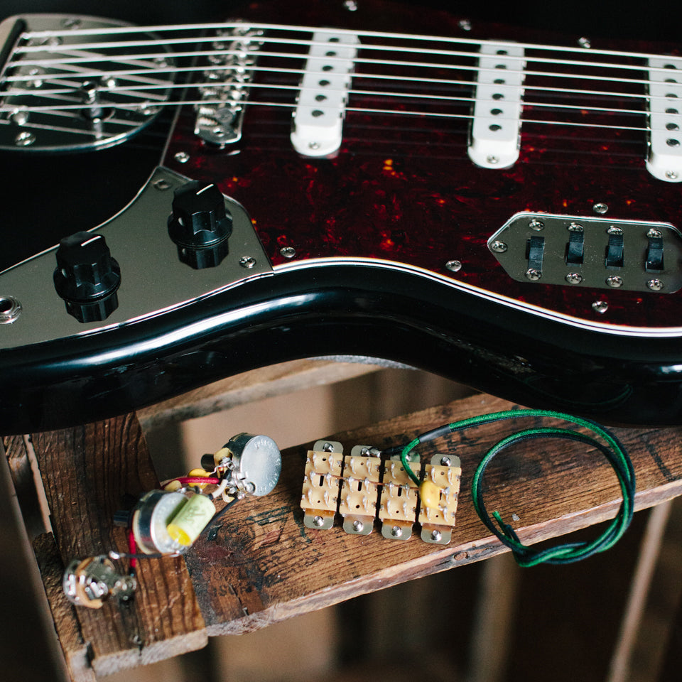 Here is my selection of kits suitable for bass guitar models like Broncos, Musicmaster, P Basses and more. You'll find in depth descriptions about each wiring style/method, specific component choices used and fitting notes too.