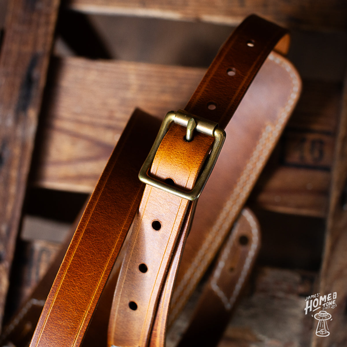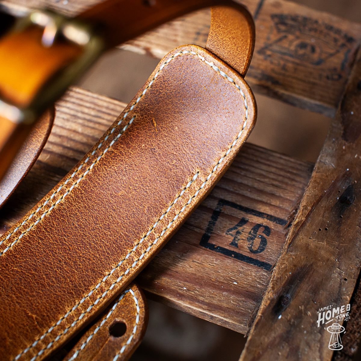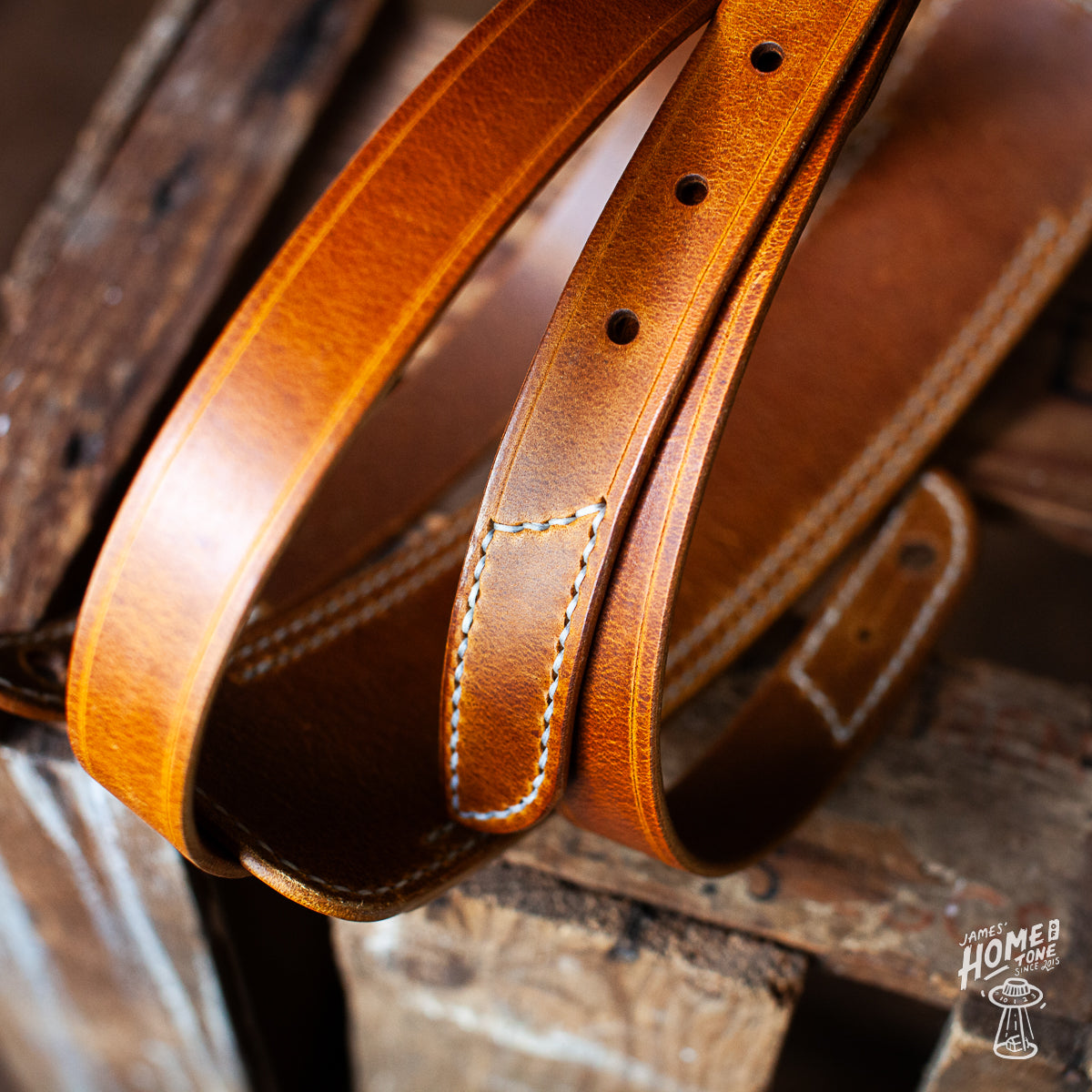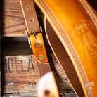 Lost Soul Leather handmade guitar strap - 'Clint' Burnt Tan w/Cream thread