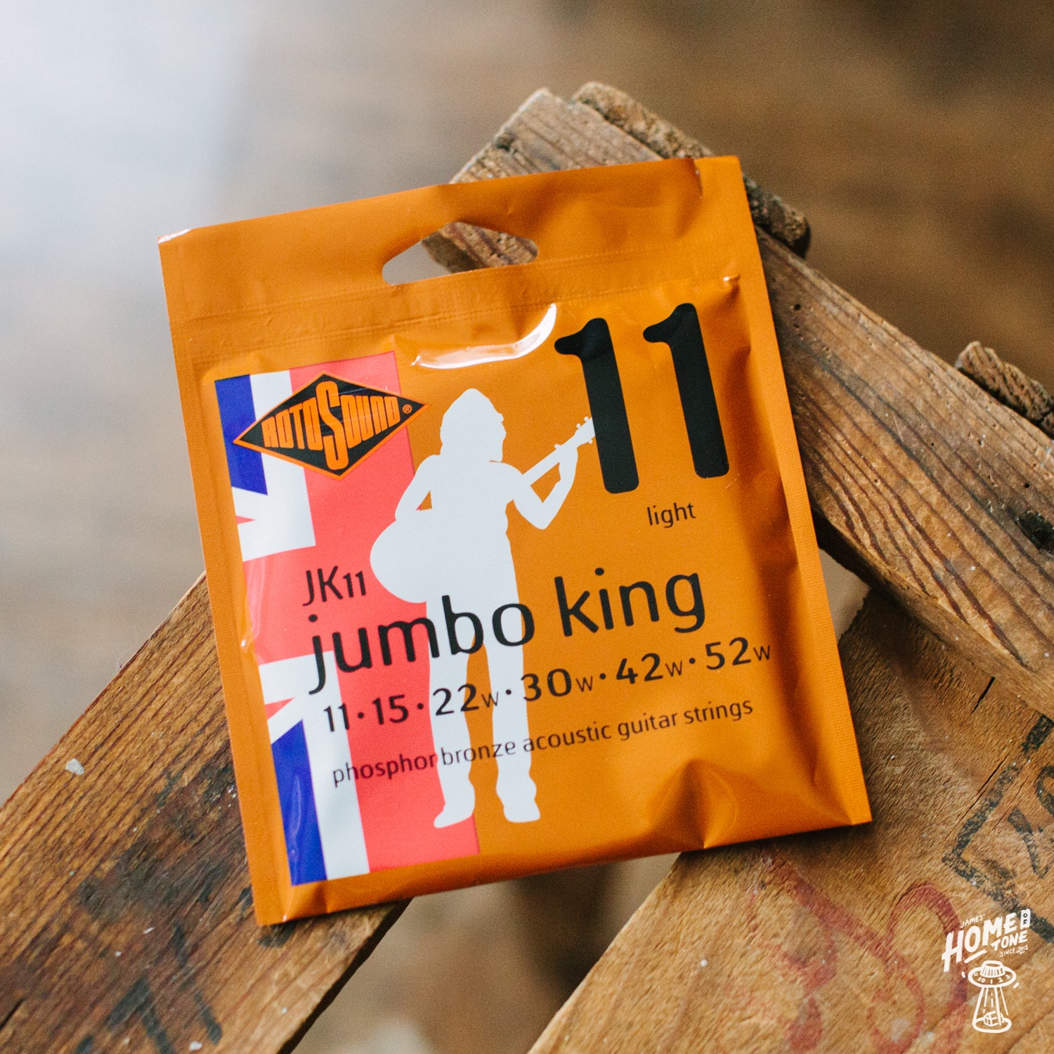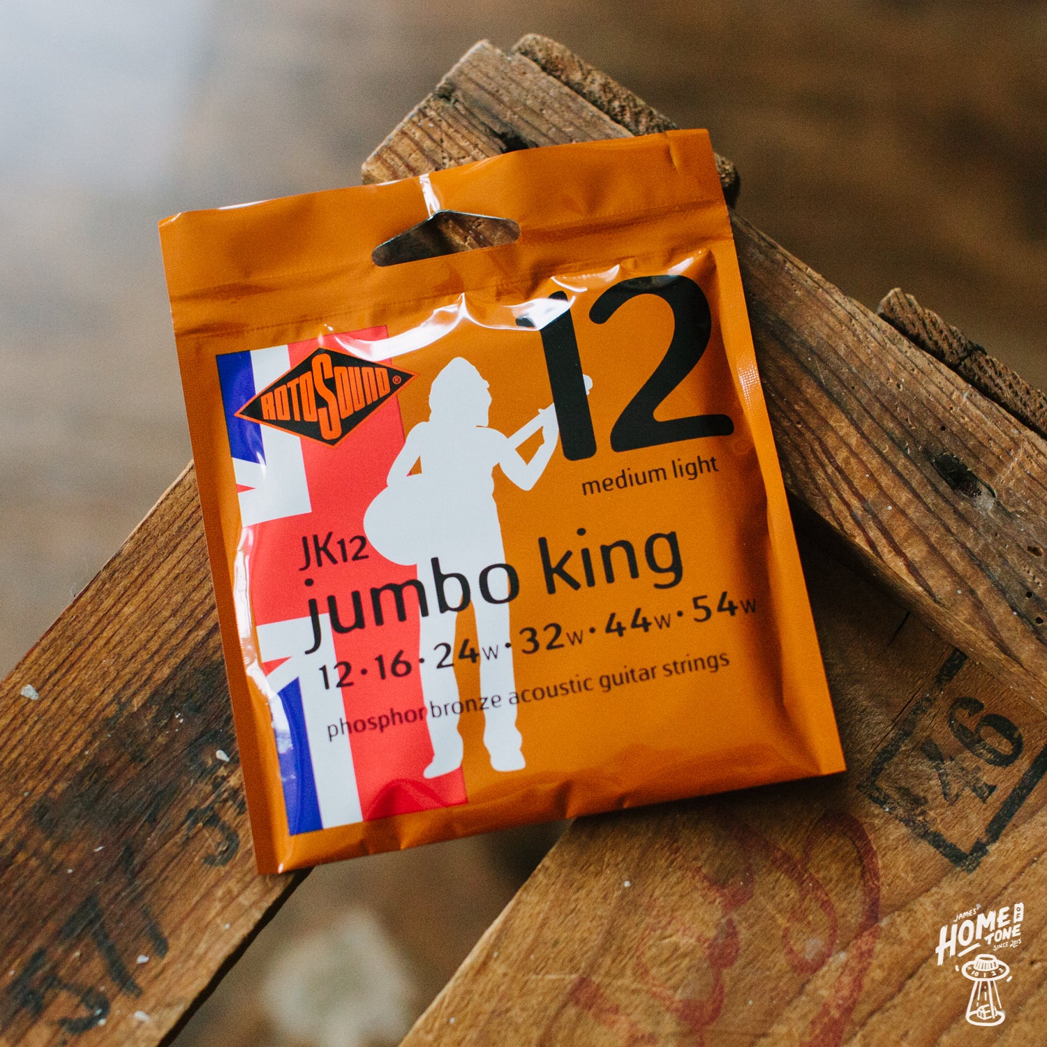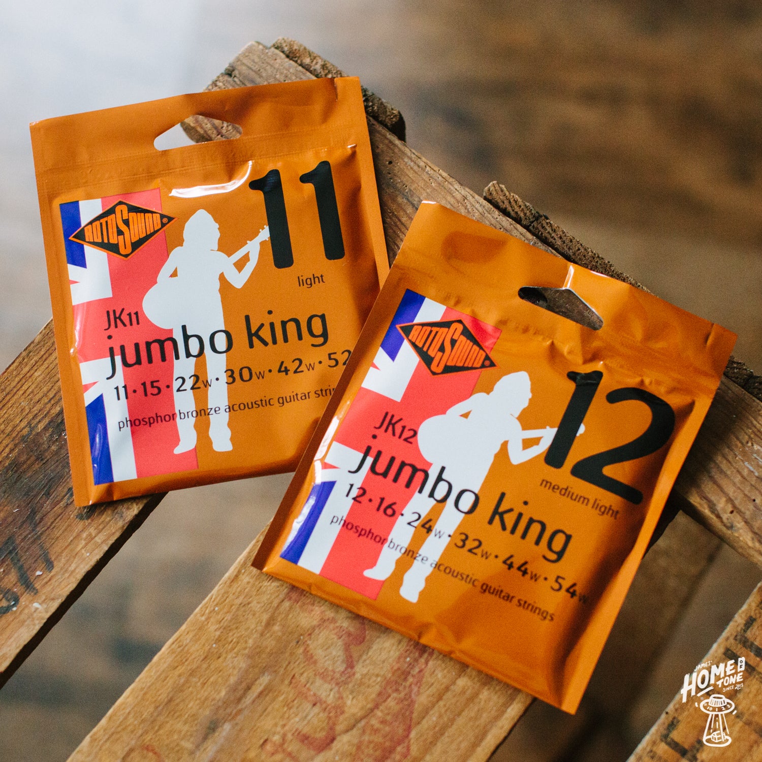 This is a set of Rotosound Jumbo King phosphor bronze acoustic guitar strings. Their biggest selling acoustic set.