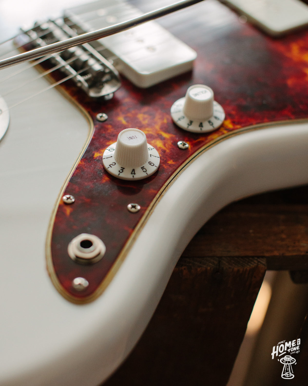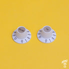 These are some really nice, high quality but affordable witch hat control knobs with embossed numbers, for push-fit split shaft pots (CTS 24 spline 5.95mm). They feature a silver cap with 'Volume' or 'Tone' script, and are available in bright white as well as the popular Antique White and black. I've included a photo of the antique white versions fitted to my own demo Jazzmaster too if it helps visualise how they look in situ!