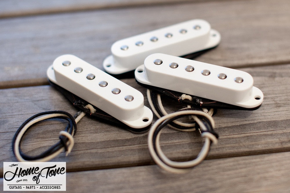 Everything you love about great Strat pickups, plus some! Original spec A5 magnets in a custom stagger. The neck and middle are clear and bell like. The bridge has more output than usual to alleviate some of the piercing highs and better match the output in the set. Fully prepare yourself to fall in love with this Strat pickup, I know I have!